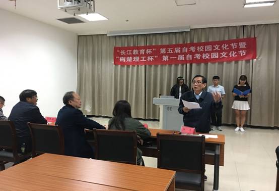 首先,全日制自考本科助学班副主任江华老师讲话,介绍自考文化节活动内容及安排,传达自考文化节精神,宣布2017级班级合唱比赛正式开始。