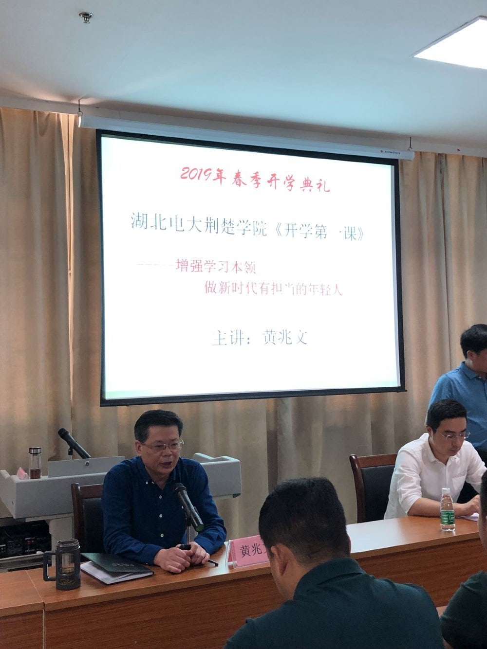 最后,经理黄兆文给新生代表们作了开学第一课《增强学习本领,做新时代有担当的年轻人》。